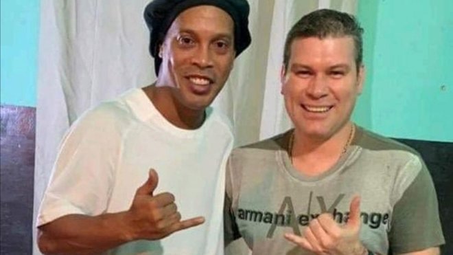 かつてパラグアイサッカー協会の会長だった父、ラモン・ゴンザレス・ダハーと共に投獄されているルケニョの元社長の横でロナウジーニョはいい表情を見せている。二人の元リーダーはマネーロンダリングと高利貸しの罪を犯した疑いで告発されている。パラグアイ財務省は彼らに1,000万ドル(約10億5,000万円)の罰金要求している。