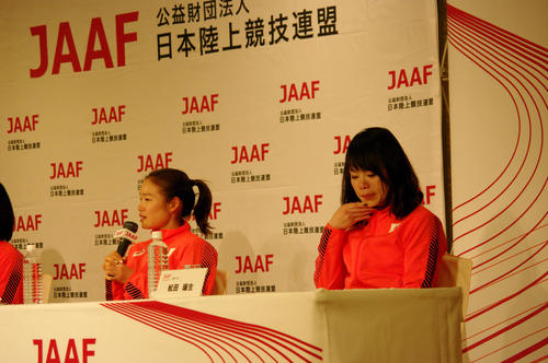 晴れの会見場で、残酷なほど明暗がくっきり浮かび上がった。松田は1月の大阪国際女子マラソンで2時間21分47秒で優勝。