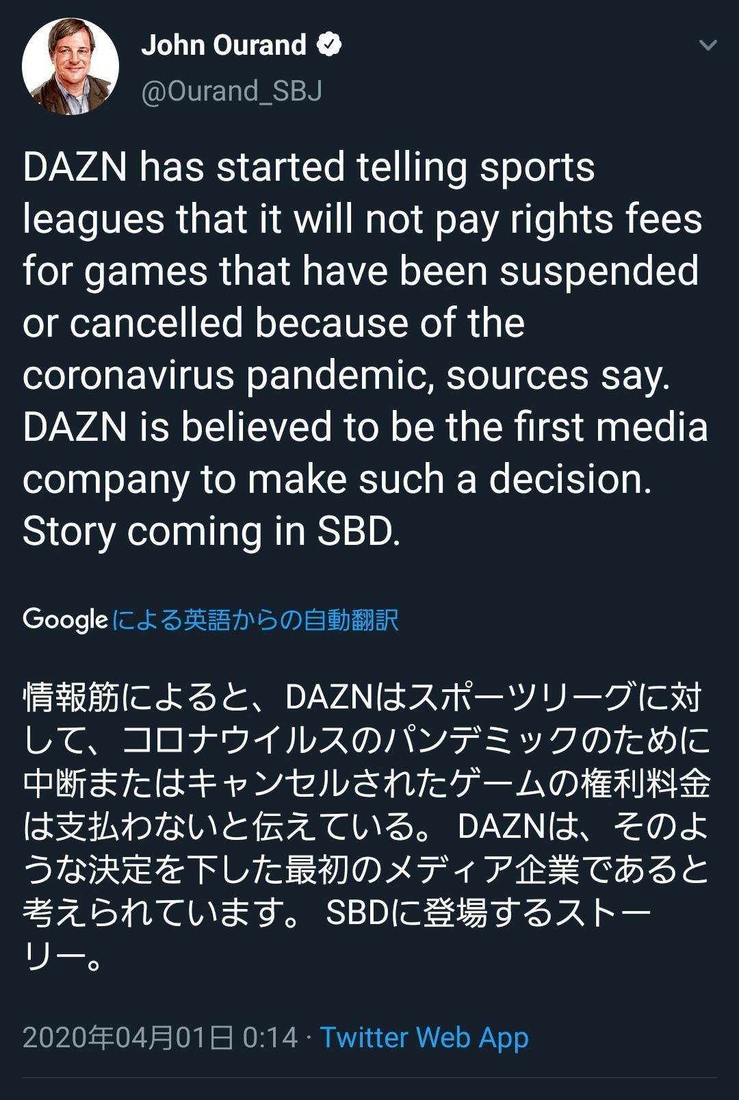 ◆悲報◆DAZN世界各国のスポーツリーグに放映権料支払い停止を通達し始める…コロナ禍で…