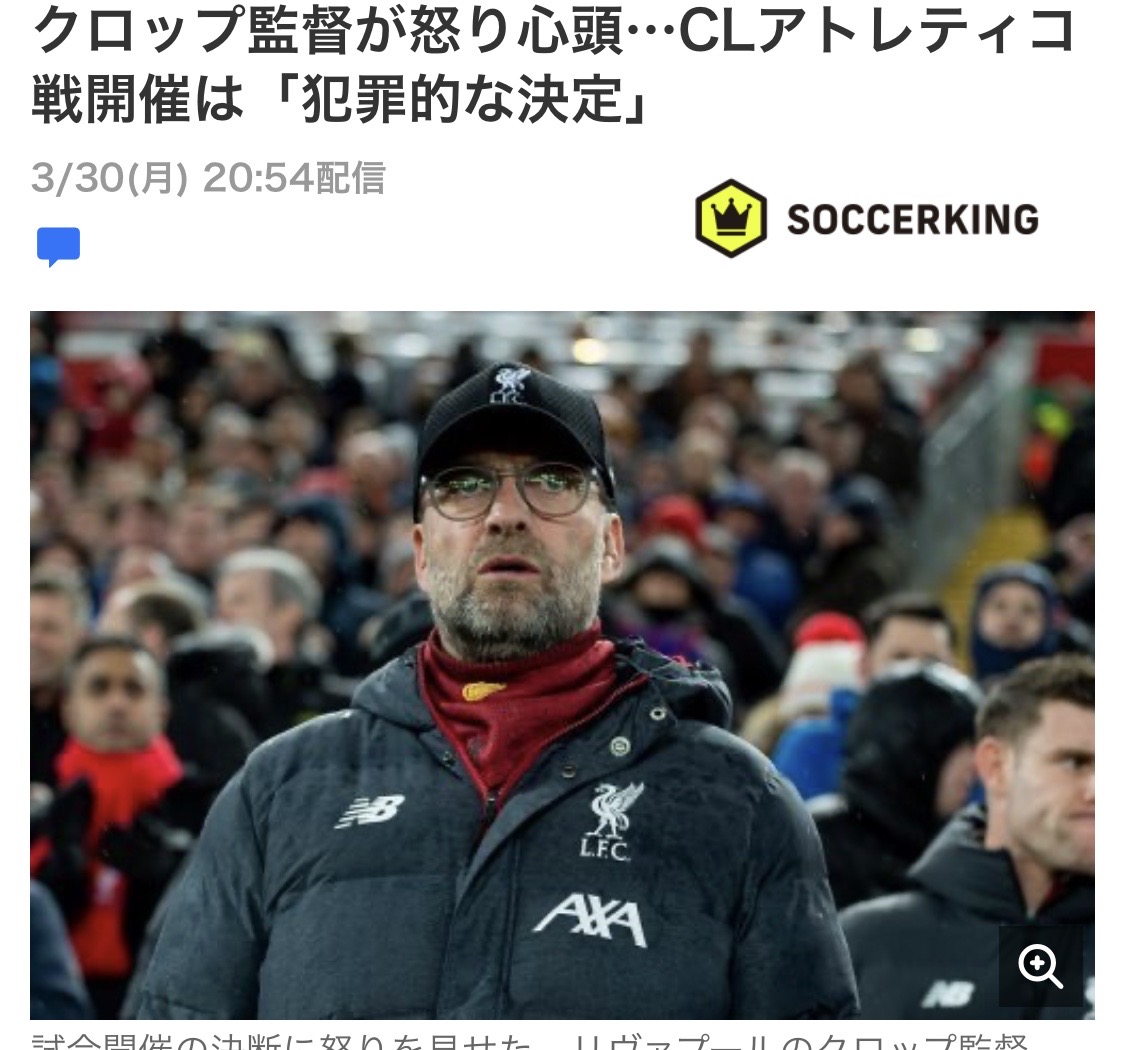 【悲報】男クロップ、アトレチコ戦開催に激怒wwwwwww