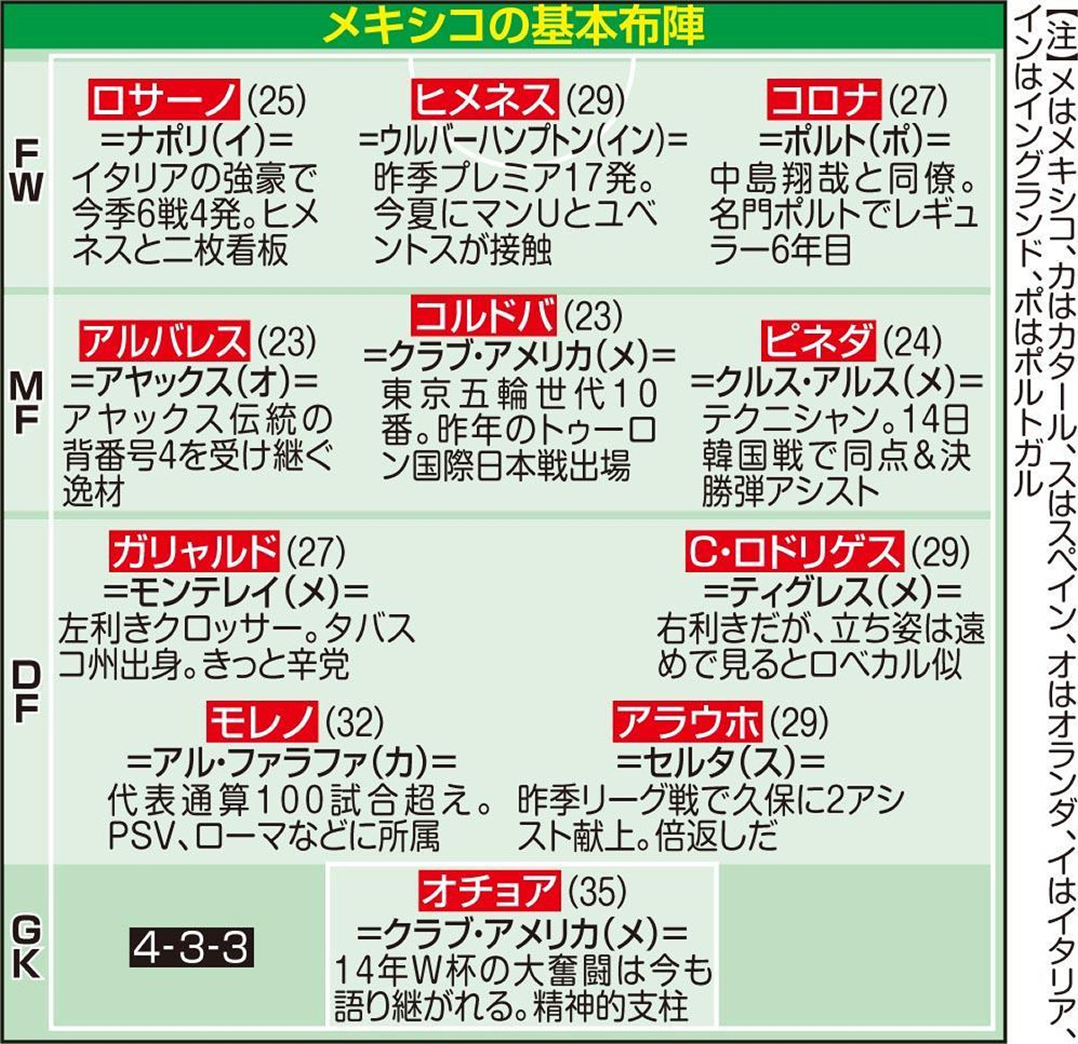 ◆小ネタ◆某スポ新のメキシコ代表スタメン紹介のキャプションに草「遠目で見えるとロベカル似」「タバスコ州出身。きっと辛党」