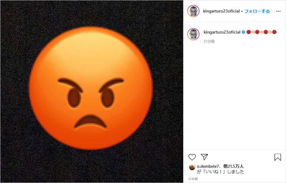 ビダルのインスタ笑った どこまでも我慢できないんやな