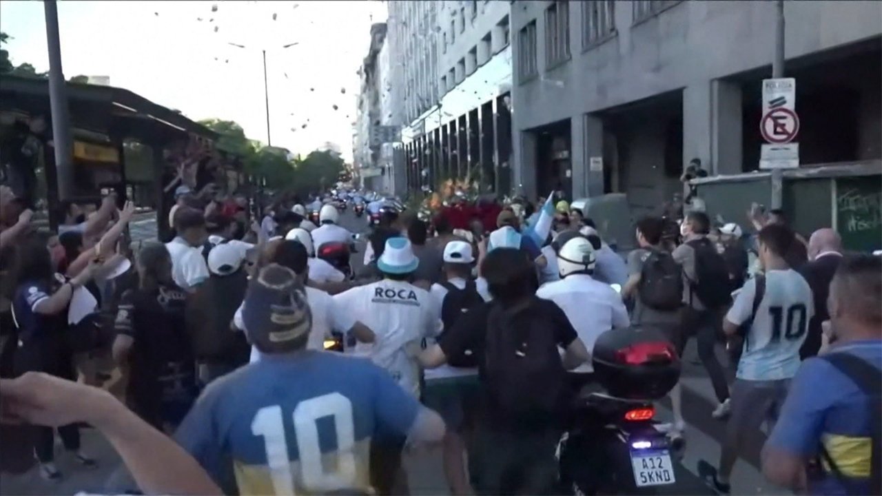 マラドーナ氏埋葬 ファン殺到 警察と衝突も 催涙ガスや放水車が使われ、一時、騒然