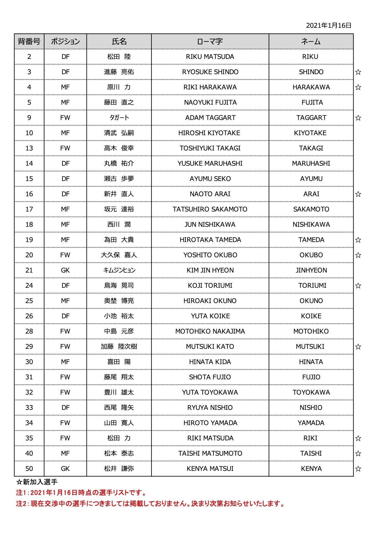 ◆悲報◆C大阪新体制メンバー表の一桁番号が空き番号だらけ!ヨニッチもいない
