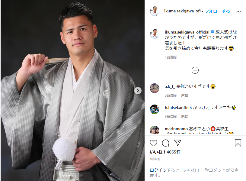 ◆画像◆新成人で羽織袴姿の鹿島DF関川郁万から漂う茨城のヤンキー感がすごいと話題に!