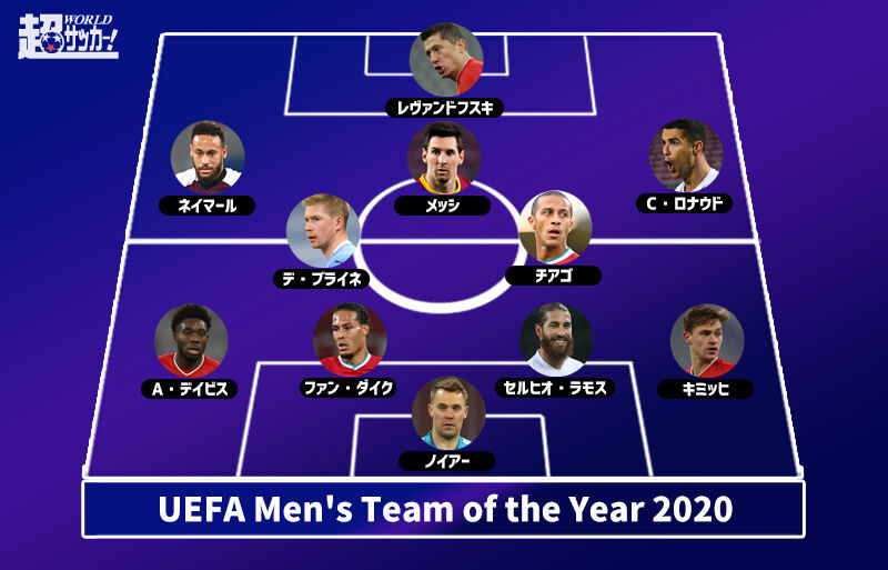 欧州サッカー連盟(UEFA)は20日、2020年のUEFAチーム・オブ・ザ・イヤーを発表した。同賞は2001年よりスタート。UEFAが選出した受賞候補50名の中からユーザー投票により、2020年を彩った最高の11名が決まる。