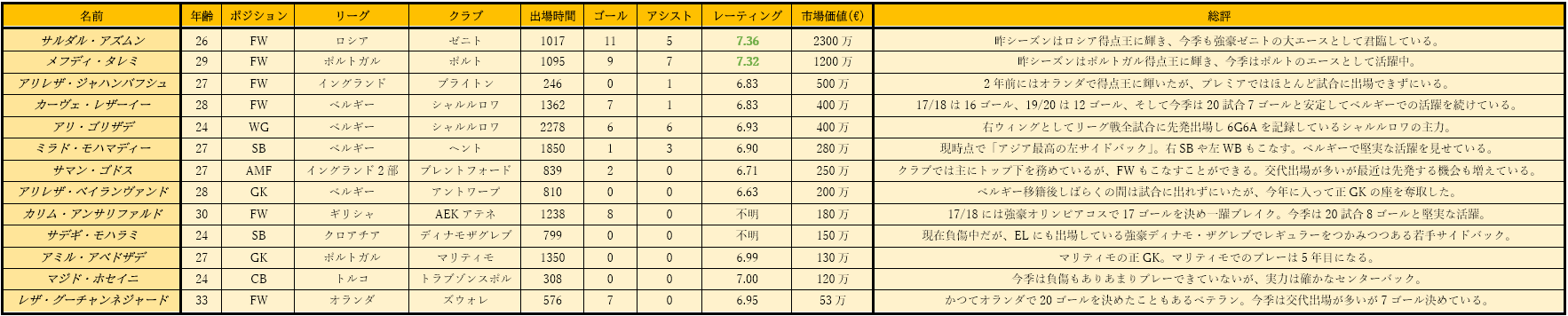 アジアのライバル、イランと韓国のサッカー欧州組の現況