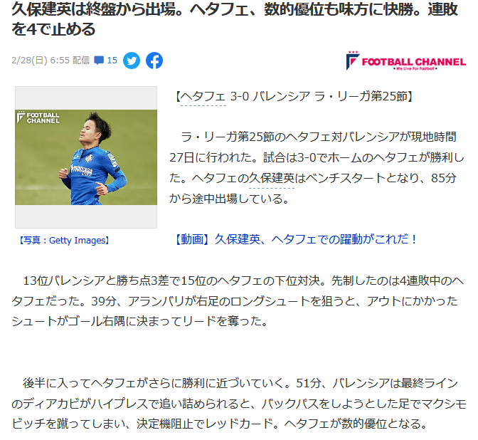 ◆悲報◆某サッカー専門誌さん、「ヘタフェ、味方に快勝!」とバレンシアを同胞扱い(´・ω・`)