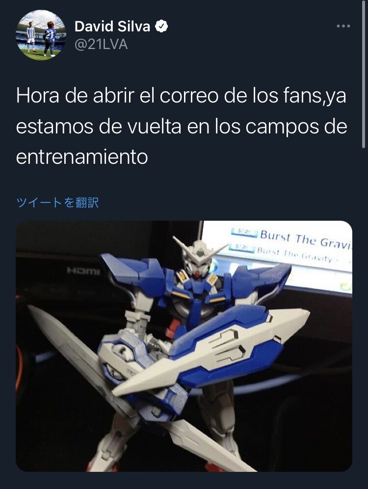 【悲報】ダビドシルバさん、ガンダムと謎の日本語サイトの写真をツイートする