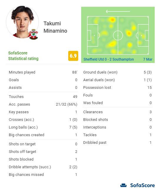 【朗報】セインツ南野タキ、シェフィールド戦のスタッツwwwww