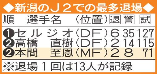 ◆悲報◆新潟の至宝本間至恩、退場とカードの多さに懸念「アグレッシブとラフは違う」