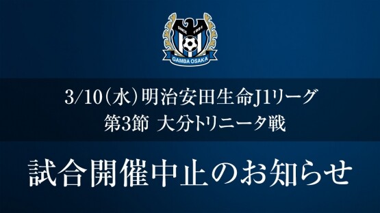 ◆Jリーグ◆G大阪、3月10日の第3節大分トリニータ戦の中止を発表!