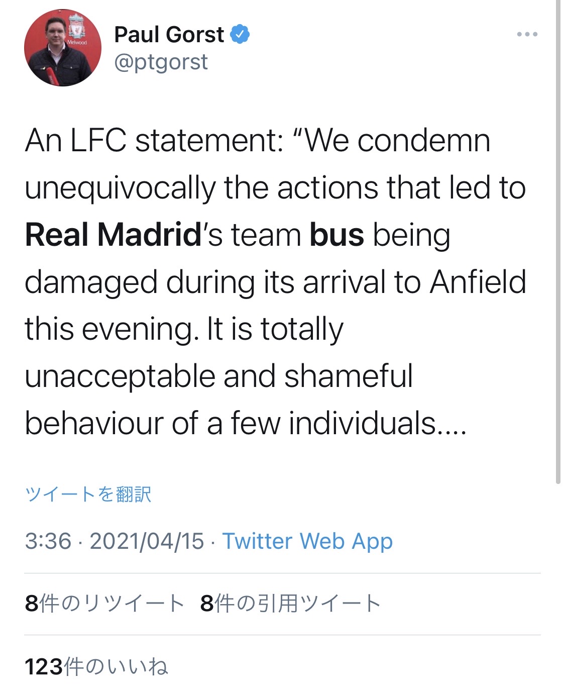 ◆悲報◆リバポサポ、マドリーに敗退して発狂…マドリーのチームバスを破壊してしまう