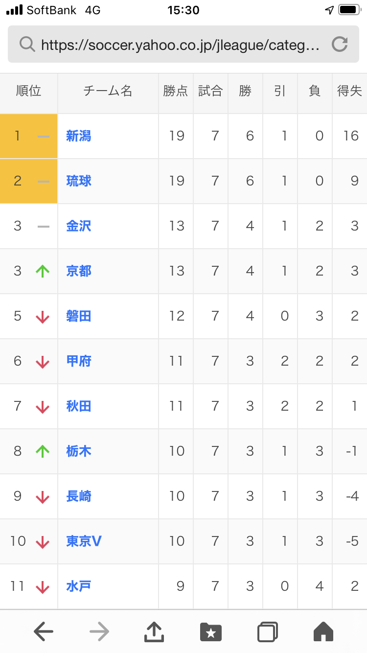 【速報】サッカーJ2の順位表がこちらwwwwwwwwwww