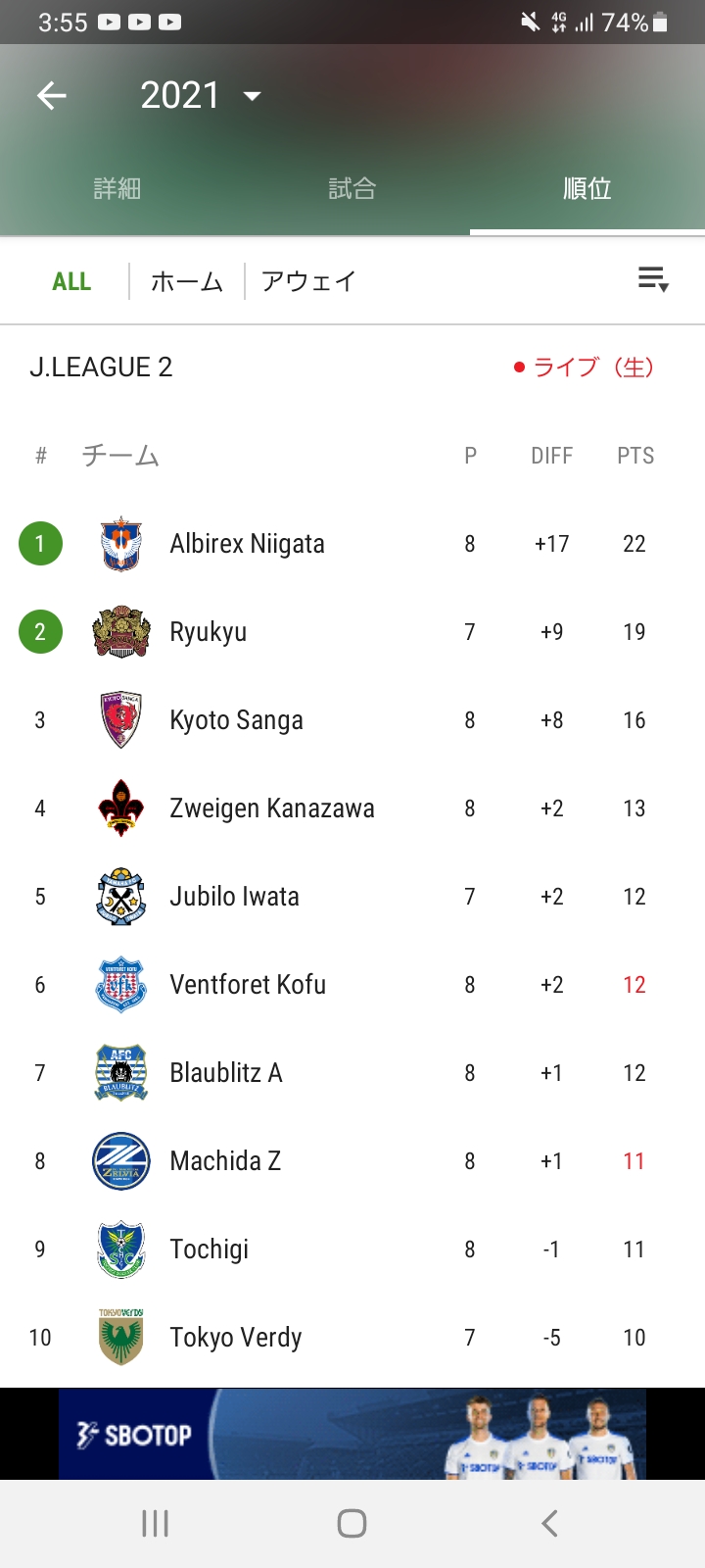 【速報】J2リーグ最新順位表wwwwwwwwwwwwww