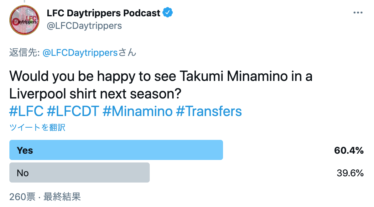 リバプールサポ、6割が南野拓実の復帰を希望?