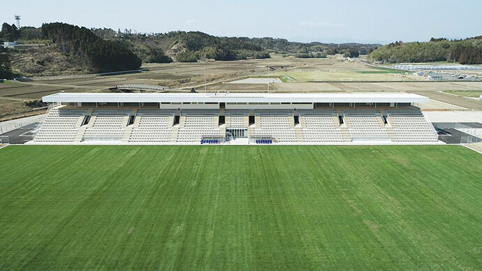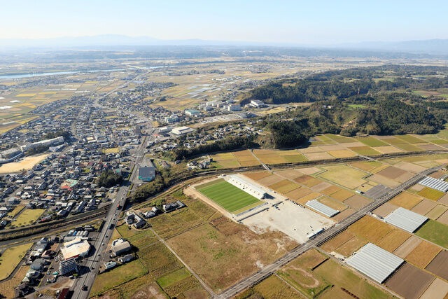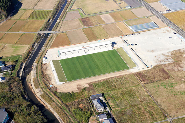田んぼに畑、ビニールハウスが居並ぶ、のどかな田園に突如、サッカー専用スタジアムができた。人口約1万7千人、野菜づくりが盛んな宮崎県新富町。近所の80代の女性は言う。「10年前まではぜーんぶ田んぼ。それが、えらいこっちゃ」