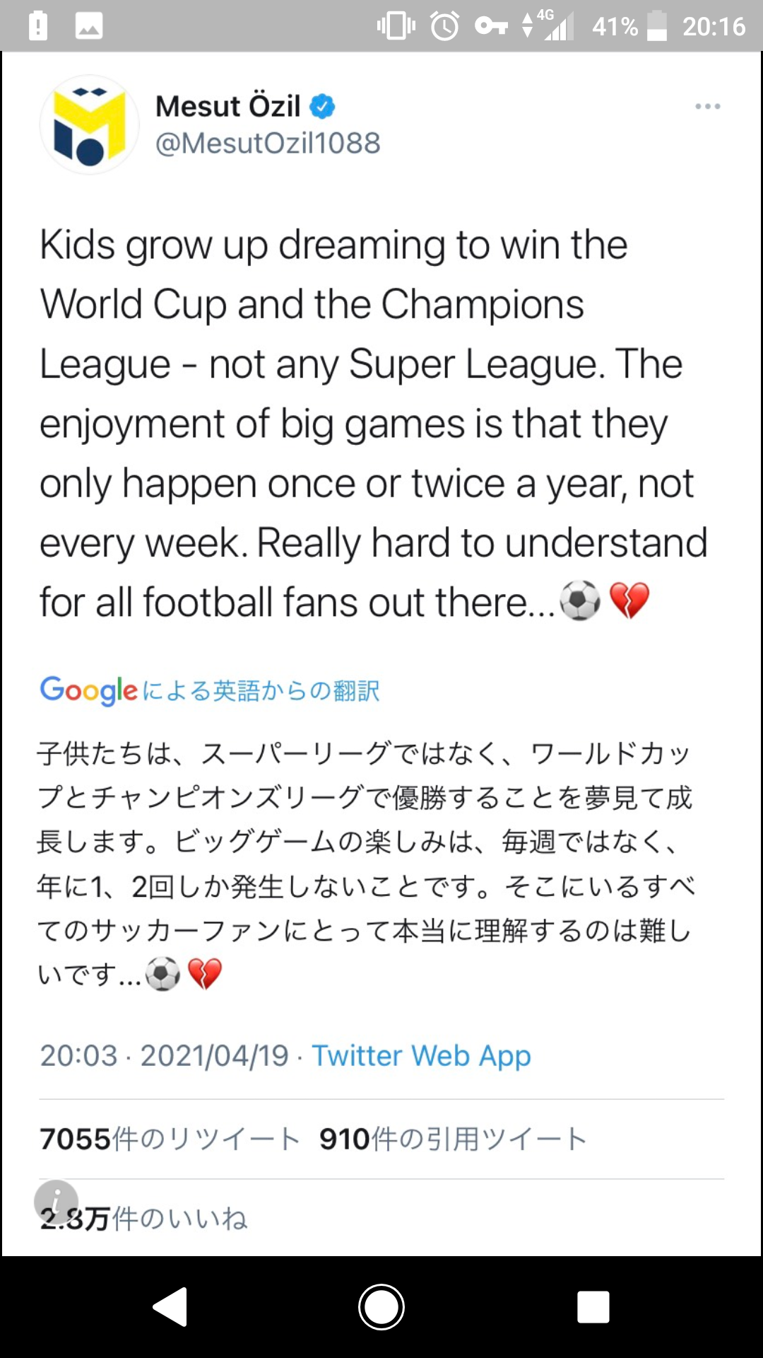【速報】エジルさん、欧州SⅬについてお気持ち表明wwwww