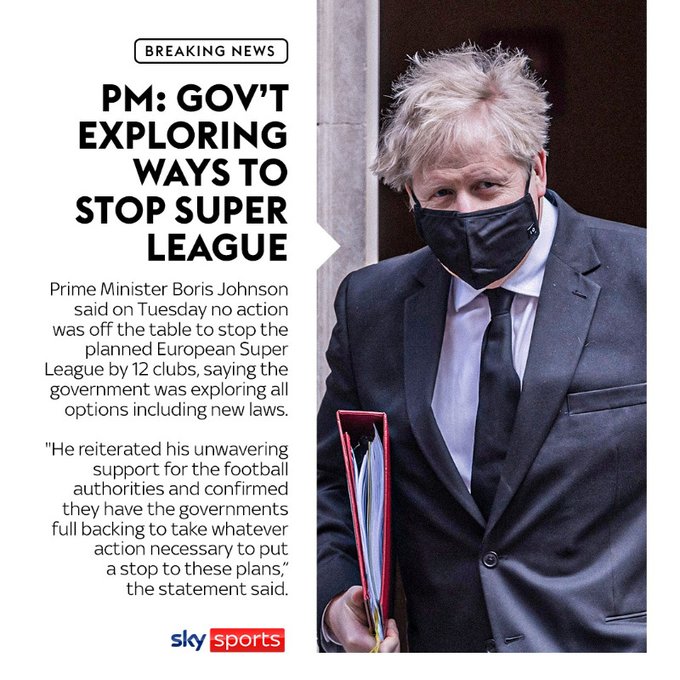 ◆欧州SL◆欧州スーパーリーグにブチギレたボリス・ジョンソン英国首相が強権過ぎると話題に!