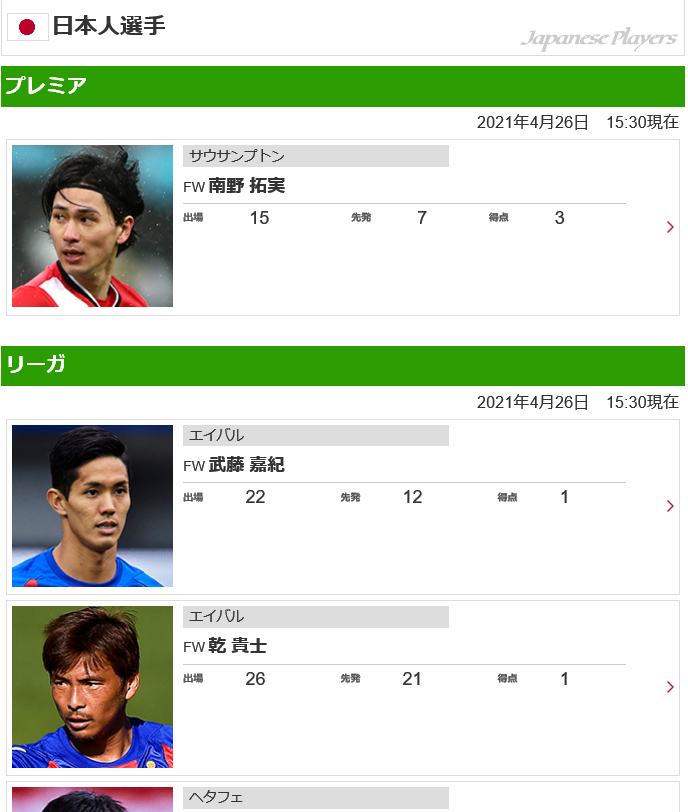 知らんやつ多いけど一部リーグ所属だけでもいっぱいいるんだな