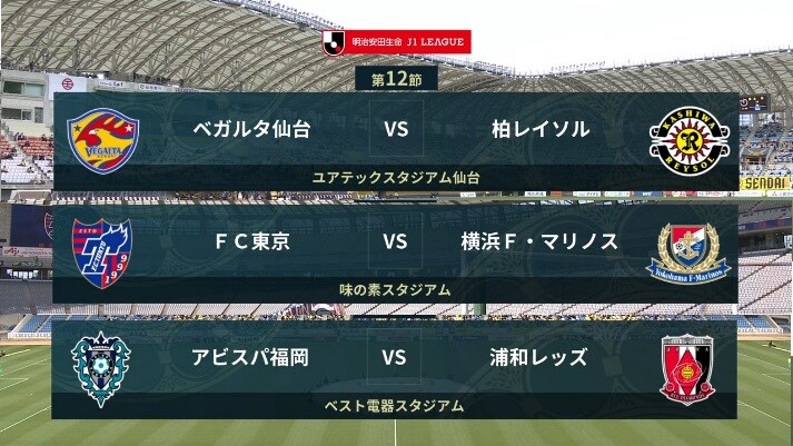 ◆J1◆12節 14時KO HT 仙台0-0柏、FC東京0-1横浜FM、福岡1-0浦和