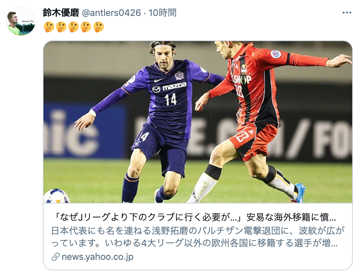 「なぜJリーグより下のクラブに行く必要が…」安易な海外移籍に憤っていたミキッチの真意とは【浅野拓磨の退団問題】https://news.yahoo.co.jp/articles/ec3eb1f628649afbe4d410c6101369c2cbabb327?page=2「クロアチアリーグと比べたら、Jリーグのレベルの方がはるかに高い。唯一ディナモ・ザグレブだけはヨーロッパで戦う力があるが、他のチームは運営面や給料の支払いで問題だらけだ。それに対して鹿島は日本のビッグクラブで、ものすごく運営がしっかりしている。鹿島からハイデュク・スプリトを選ぶ理由なんてないはずだ」