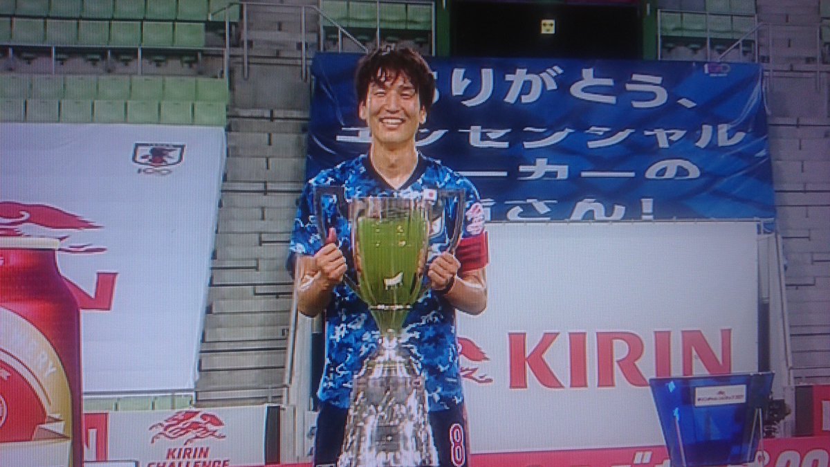 ◆代表小ネタ◆唐突にキャプテンが似合わない男原口元気がトロフィー受け取りにっこり笑ってて草