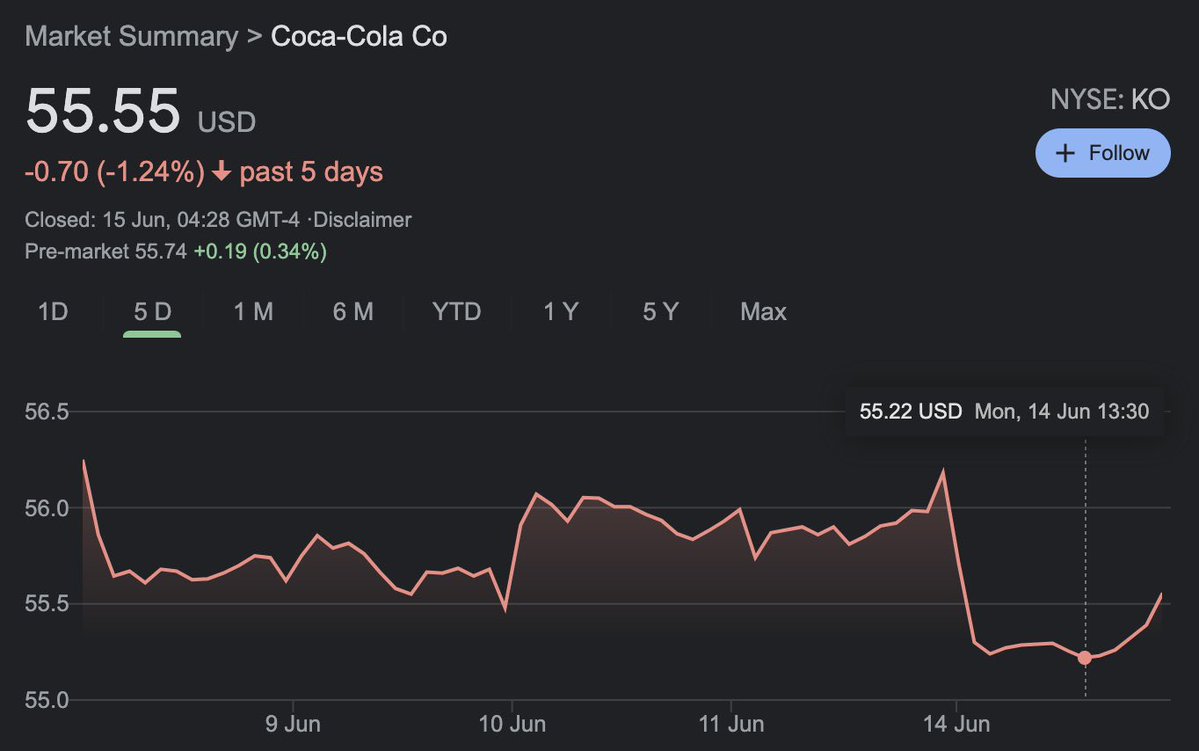◆悲報◆クリロナさんがコカ・コーラを横にどけた結果…コカコーラの株価暴落www