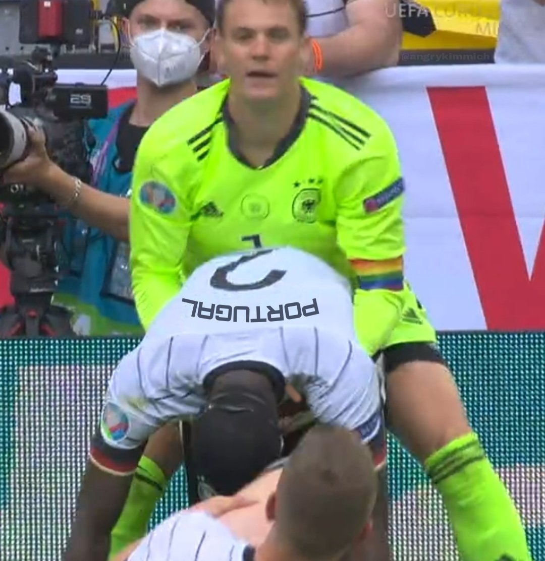 ◆悲報◆レインボーの腕章をしたドイツ代表GKノイアーさん、屈んだ葡萄牙代表DFセメドを後ろから攻めてしまう(´・ω・`)