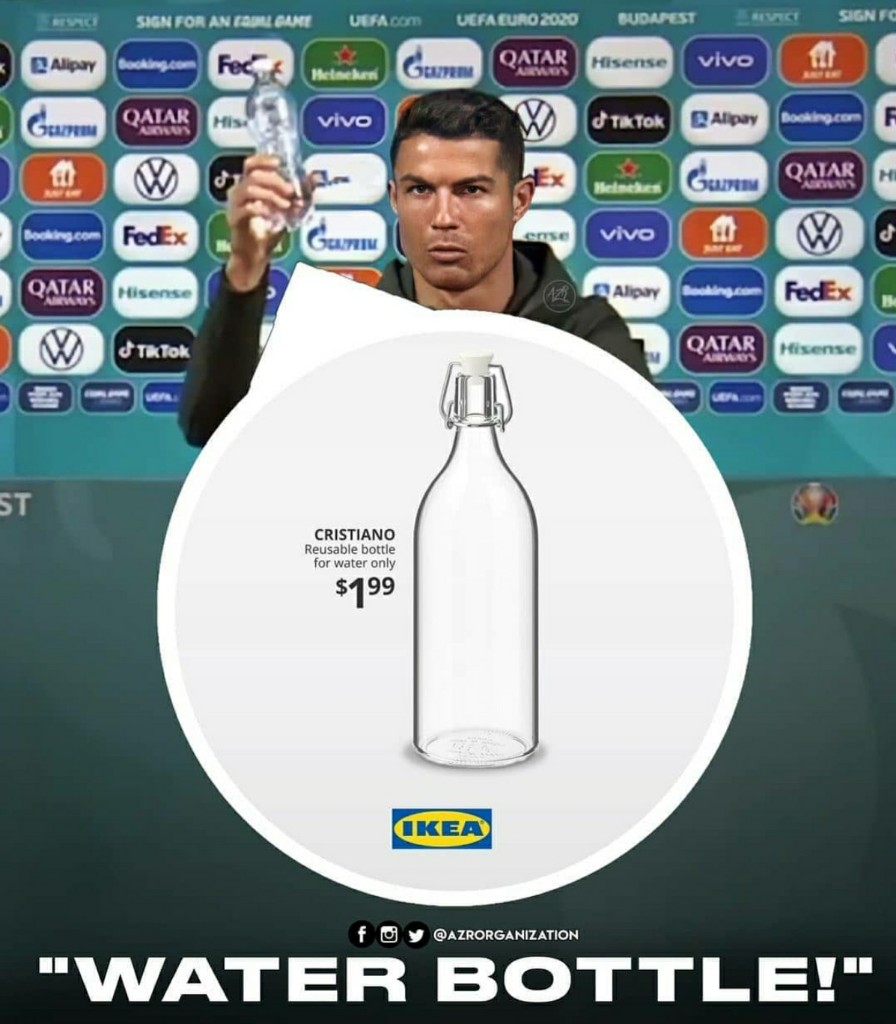 ◆便乗◆IKEAさん、クリロナの水ボトルが騒動になったからって自社の水ボトルに"CRISTIANO"と命名して販売してしまうwww