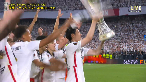 ◆朗報◆EL決勝表彰式カップ掲げる鎌田大地、カットされず!