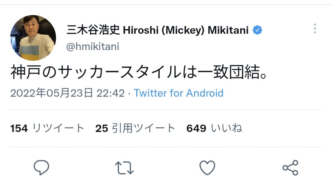 ◆朗報◆三木谷浩史氏「神戸のサッカースタイルは一致団結。」バルサスタイルじゃなかった?