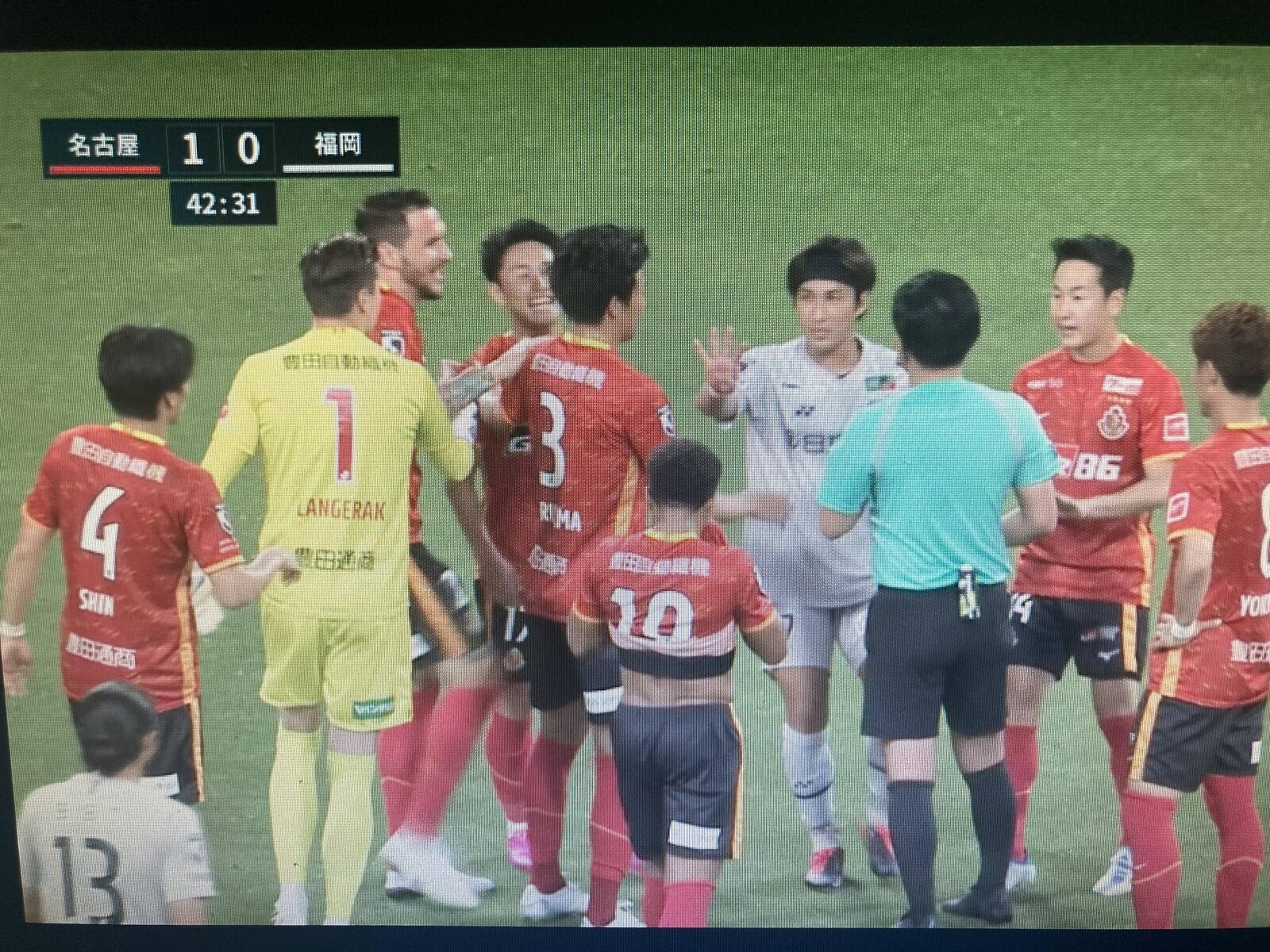 ◆J小ネタ◆審判囲み?をする名古屋イレブンに1度に4人までと優しく教えてあげる福岡FW金森くんが優しすぎた?