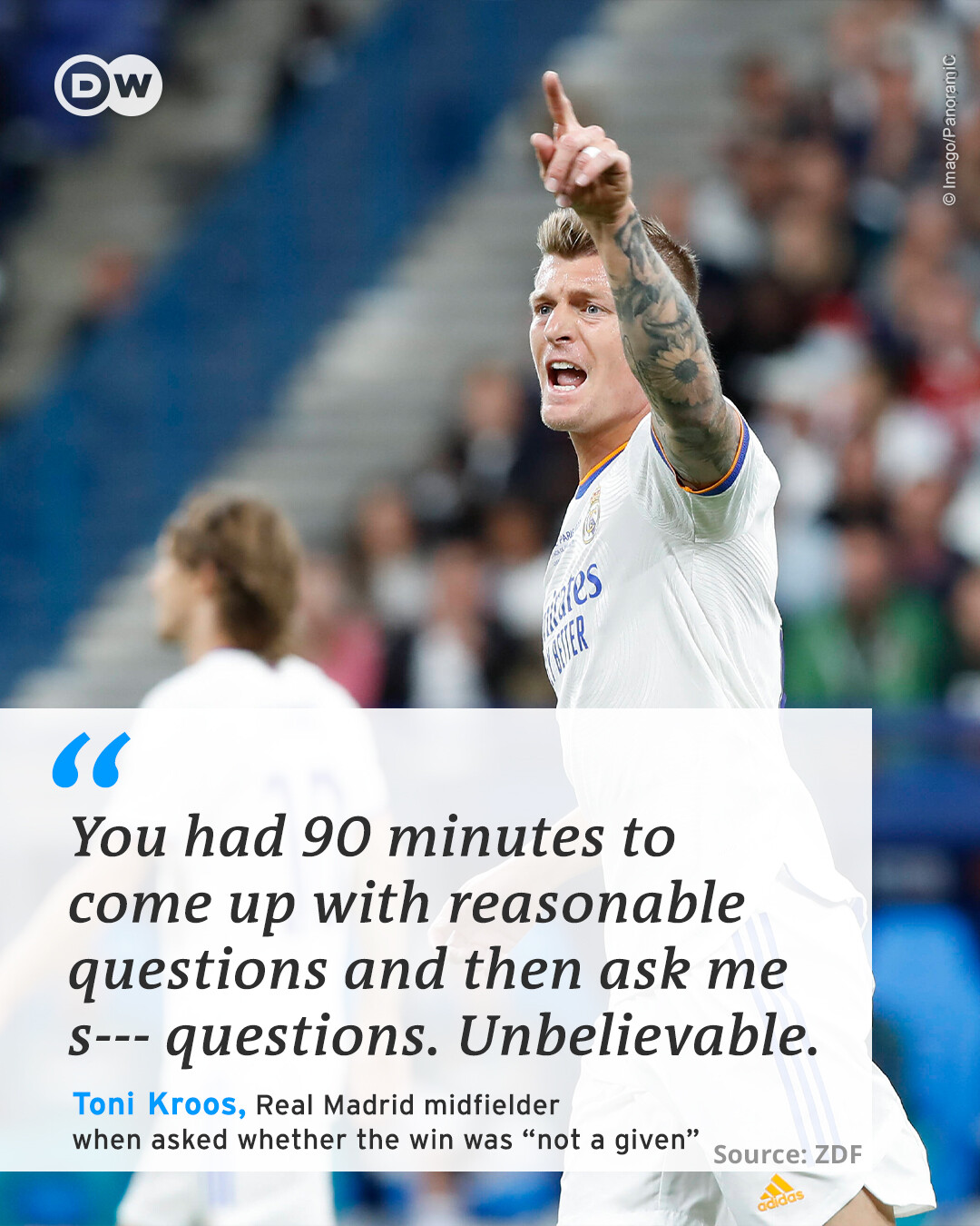 ◆悲報◆マドリーMFトニ・クロースさん記者の質問に激辛返答!「90分見てて考えた質問がそれか」