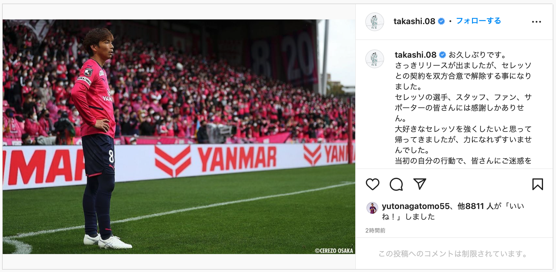 J1・セレッソ大阪は9日、乾貴士選手(34)との契約解除を発表した。乾は4月5日の柏戦で途中交代した際に暴言を吐くなど不満の態度を示した。試合後の話し合いでも反省の態度を見せなかったことから、4月17日の福岡戦から公式戦6試合の出場停止処分を受けた。