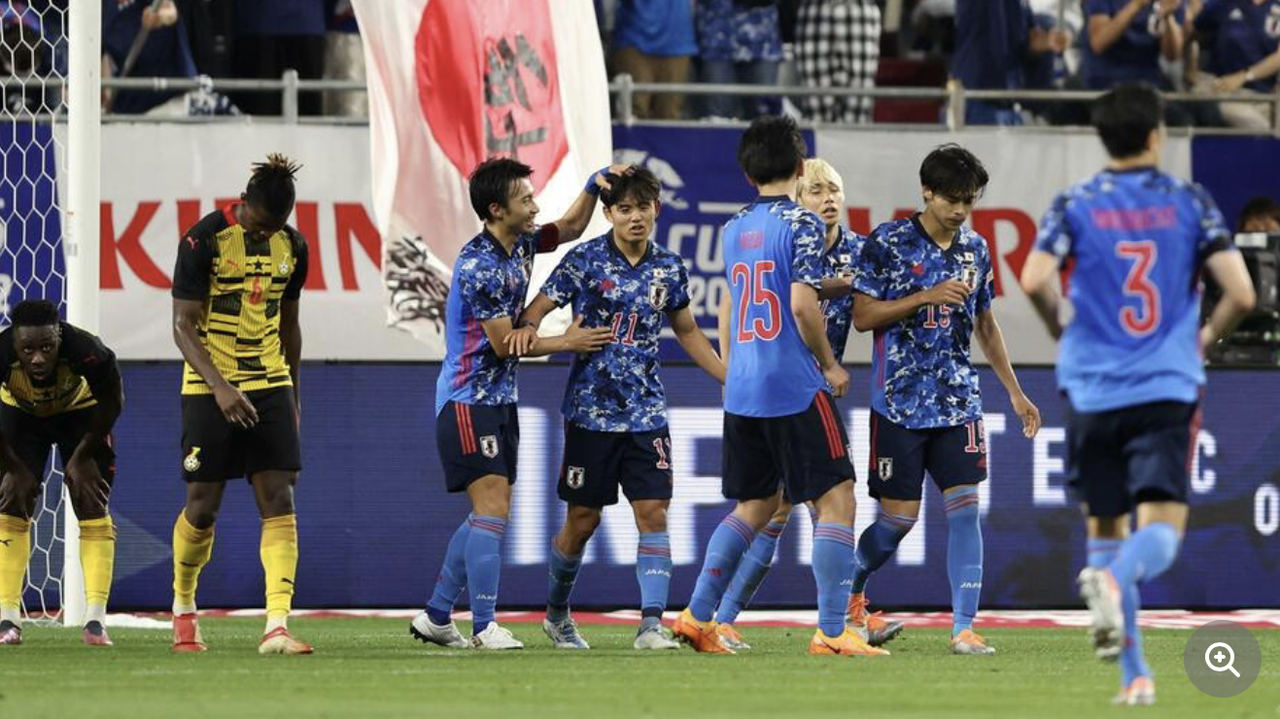 その久保はガーナ戦の分、ついに日本代表の初ゴールをマークする。左サイドから三笘が入れたクロスに正面で左足で合わせて、ゴール左に流し込んだ。