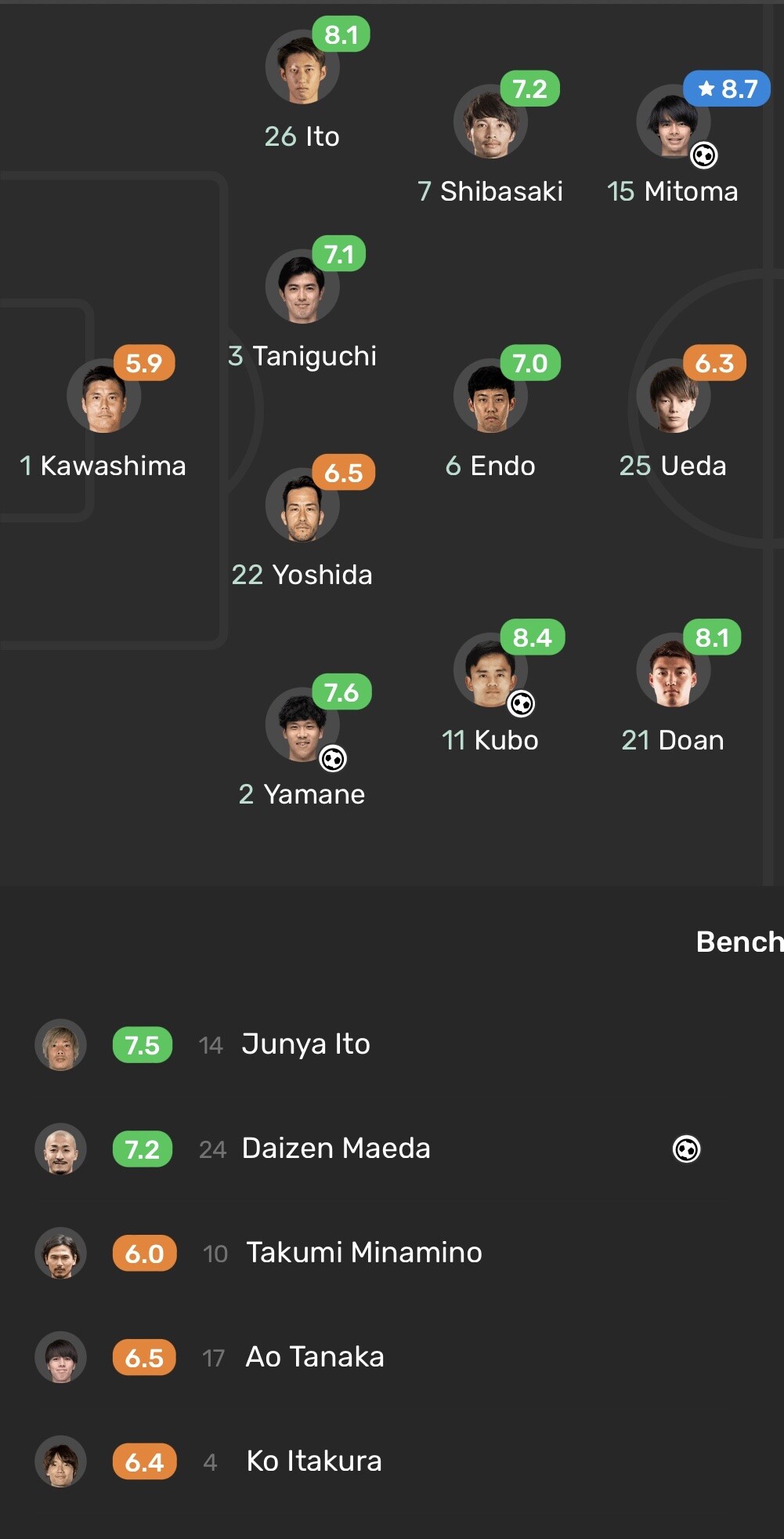 ◆悲報◆日本代表FW南野タキ、FPチーム最低点6.0