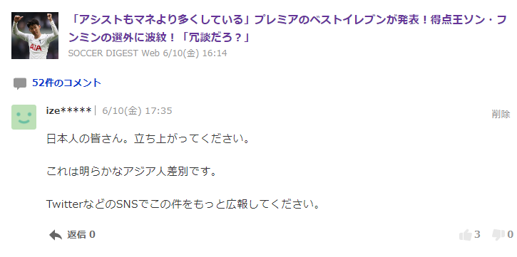 ヤフコメではアジア人差別なので抗議しようと言う声も