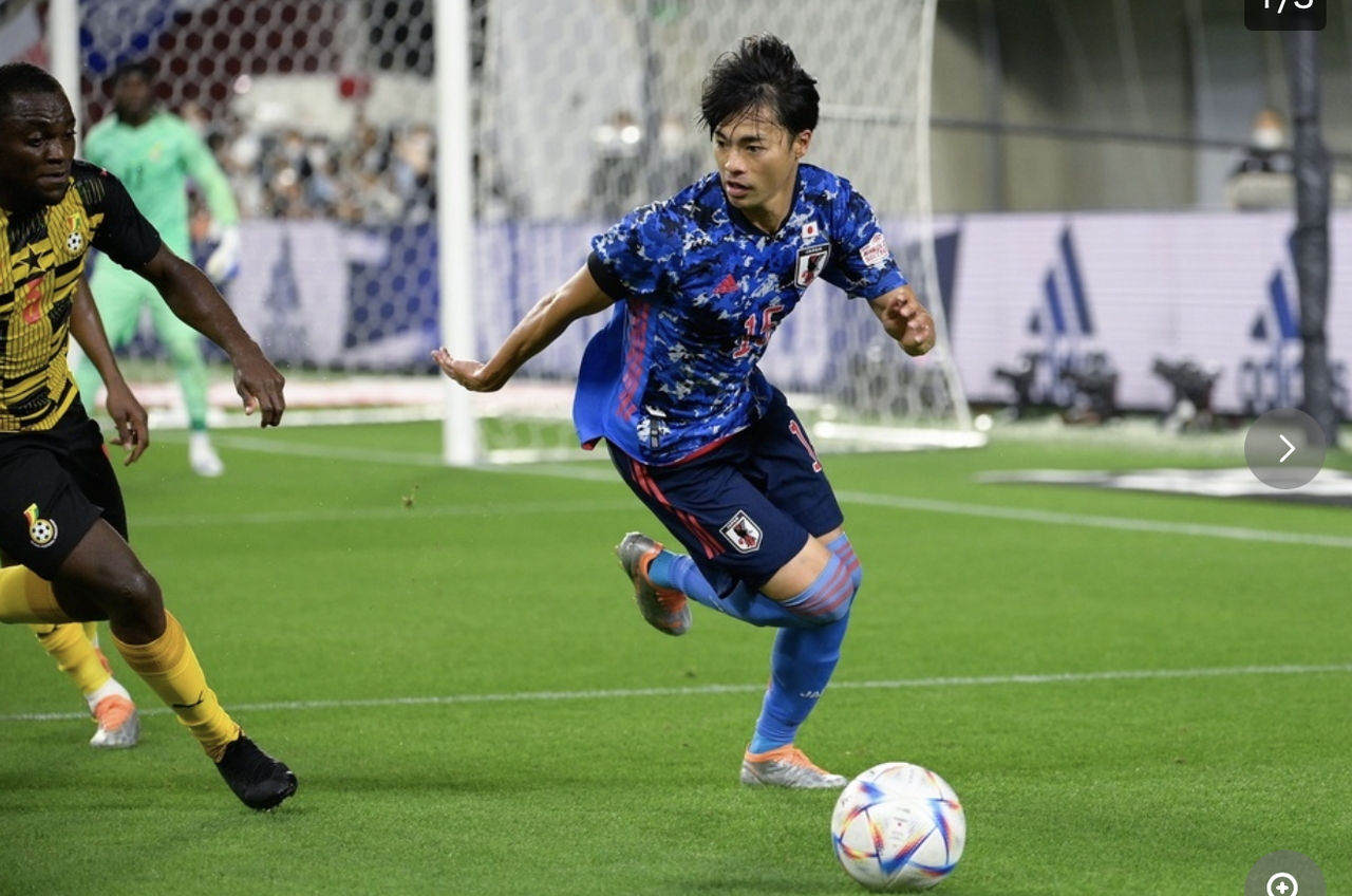 1-1で迎えた前半アディショナルタイムには、左サイドでDF伊藤洋輝の折り返しを受けて前を向く。相手がドリブルを警戒して間合いが広がっているのを見逃さず、シンプルに右足インフロントでゴールに向かうクロスを供給した。このボールに飛び込んだMF堂安律とFW上田綺世は合わせられなかったが、コントロールされたボールはワンバウンドで右のサイドネットに吸い込まれ、チームに決勝弾をもたらした。