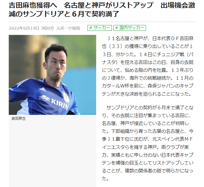 【速報】吉田麻也獲得へ…名古屋と神戸がリストアップキターー!!wwwwww
