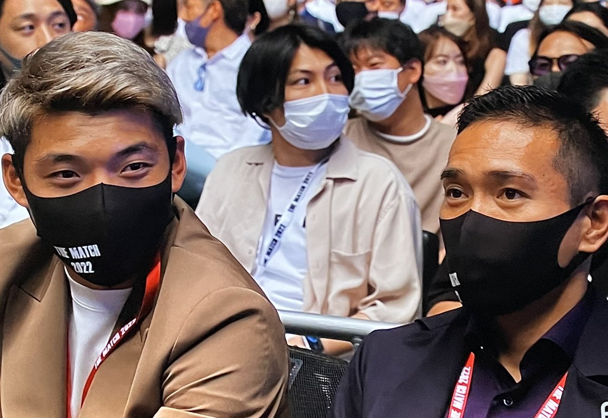 ◆画像◆THE MATCH 2022開催東京ドームに長友佑都と堂安律が並んですわっててくさ