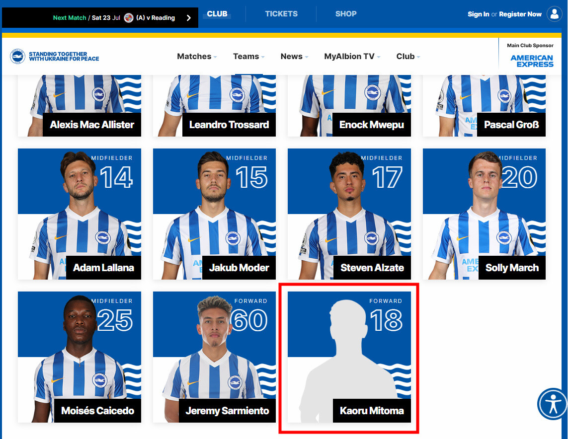 【速報】三笘薫さん、ブライトンのスカッドリスト入りキターー!!wwwwww