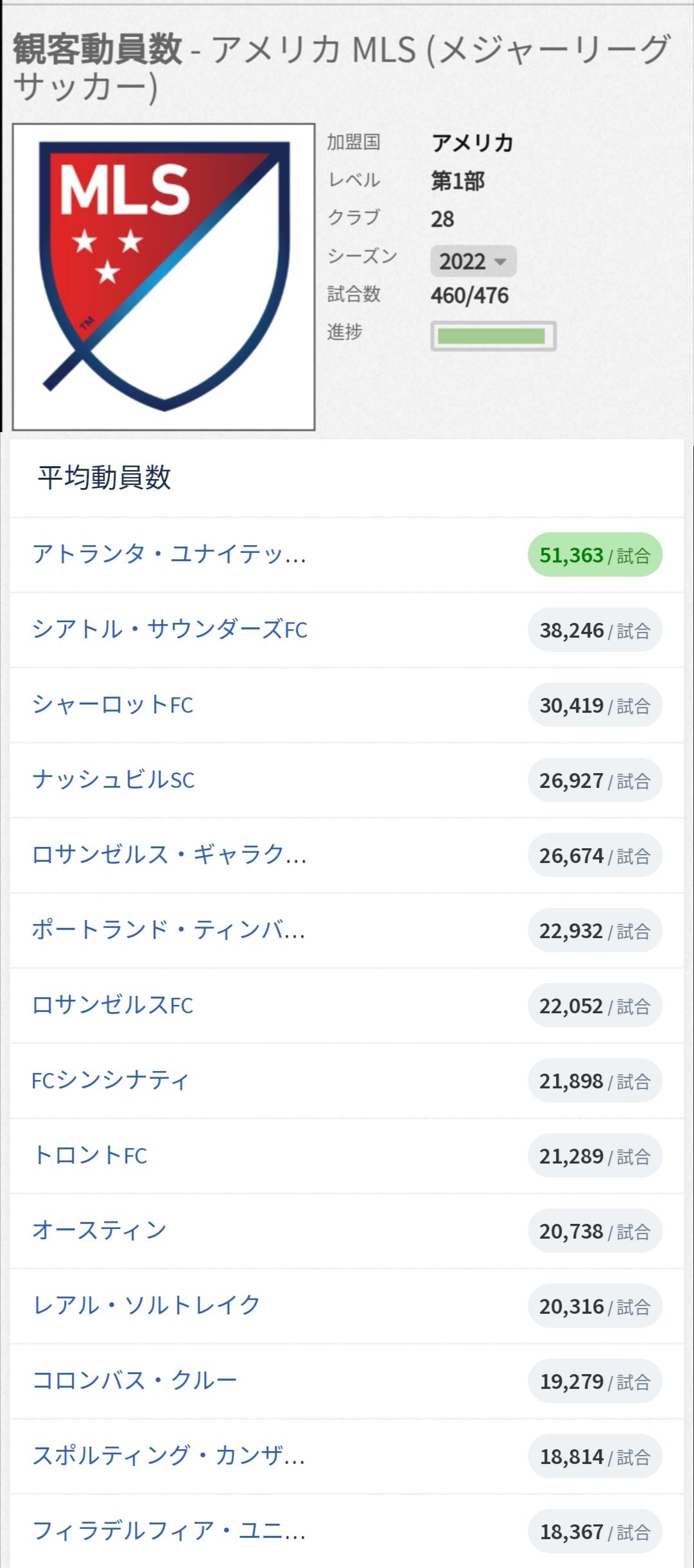 【速報】アメリカ・メジャーリーグサッカー(MLS)の観客数がこちらwwwwwwwwwwwwww