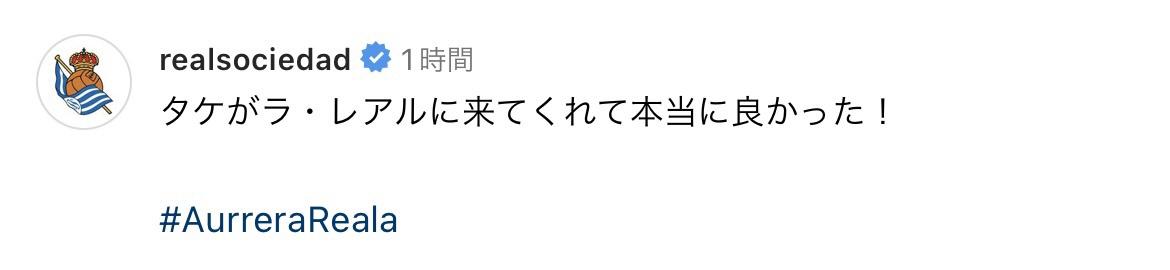 ◆リーガ◆ソシエダ公式「タケがラ・レアルに来てくれて本当に良かった!」と突如激白