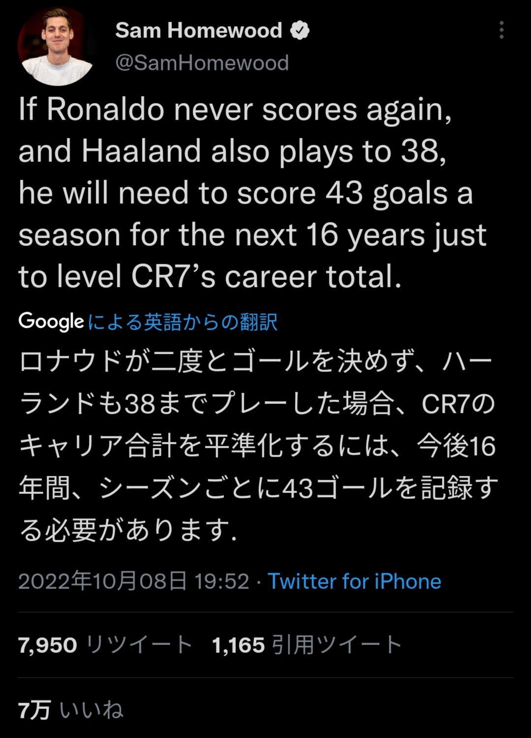 ◆記録◆ハーランドがクリロナさんを超えるにはここから16年間毎年43Gが必要…気絶しそう