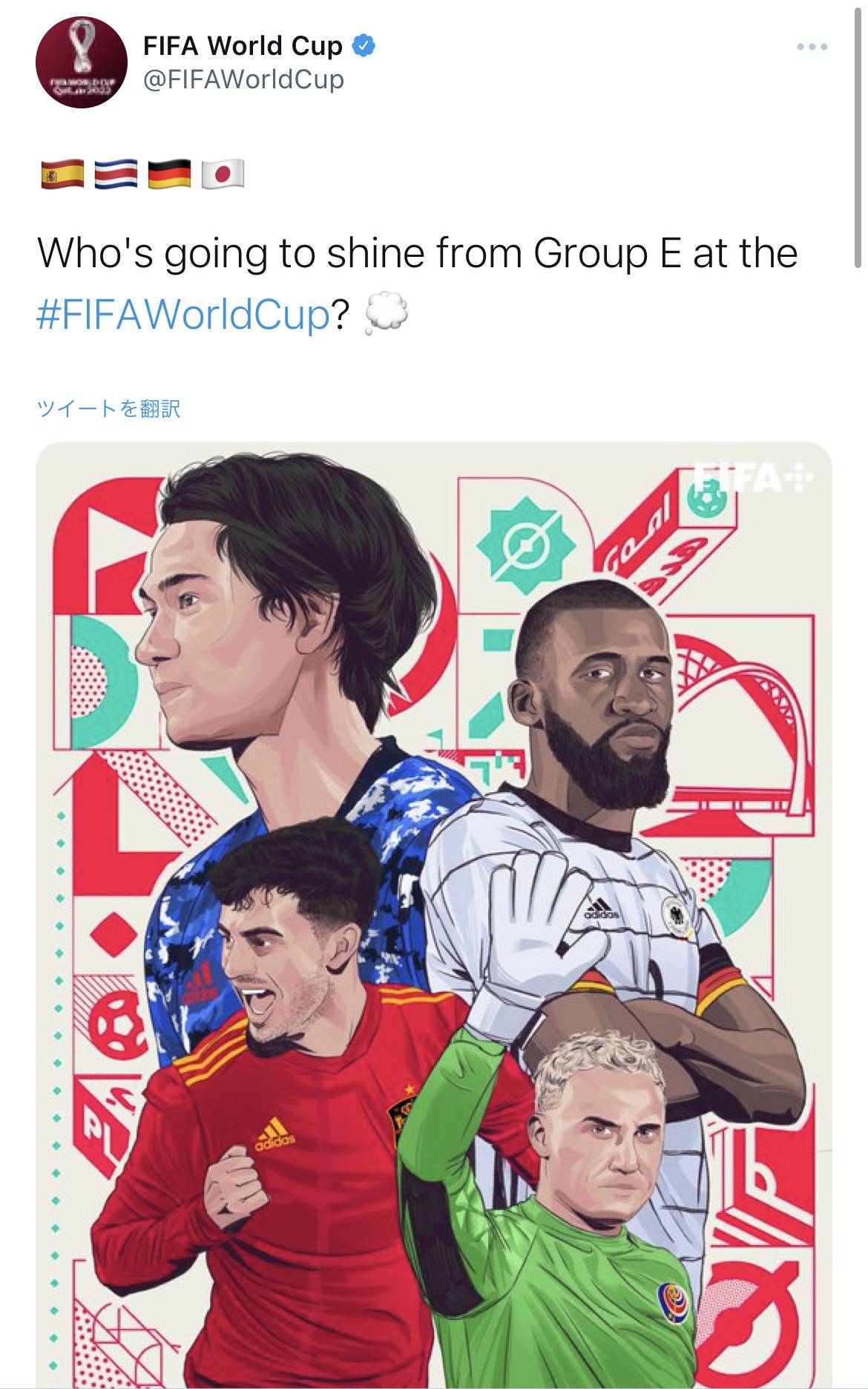 ◆W杯◆FIFA W杯公式ツイ垢がグループE4チームの顔をUP!日本は未だ南野タキ😄