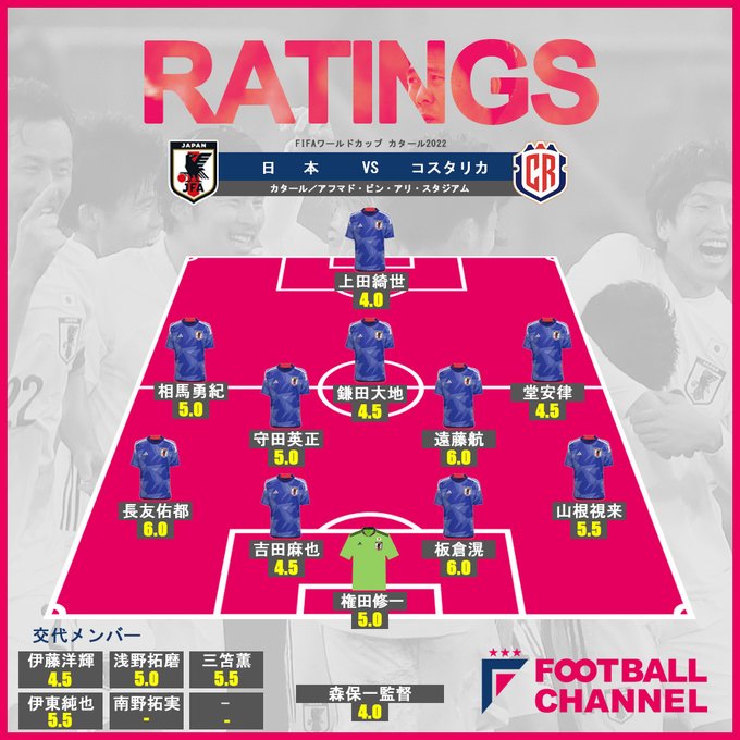 サッカー日本代表は27日、FIFAワールドカップカタール2022・グループE第2節でコスタリカ代表と対戦し、0-1で敗北。この試合で森保ジャパンのパフォーマンスはどうだったのだろうか。フットボールチャンネルでは、コスタリカ代表戦に出場した選手(出場時間の短い選手は除く)、監督のパフォーマンスをどこよりも早く採点する。