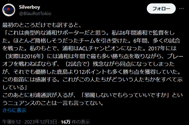 ◆悲報◆ミシャ監督のスピーチを通訳があること無いこと盛った疑惑勃発!なお札幌サポも一部ブーイングや抗議弾幕など一枚岩ではない模様😭