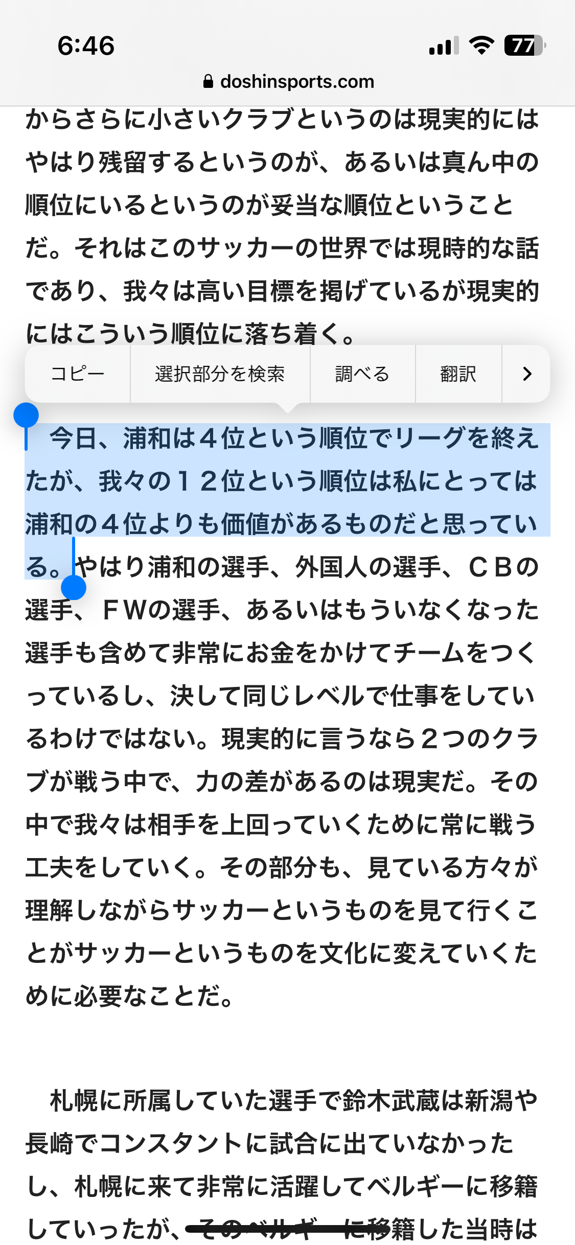 ◆悲報◆札幌ペトロビッチ監督「浦和の4位より札幌の12位のほうが上」「浦和は私の元でACL優勝した」???🤪
