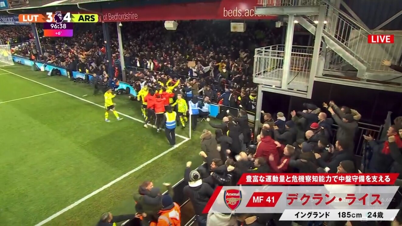 冨安メンバー外の首位アーセナル、壮絶な打ち合いの末に劇的勝利!97分のライス弾でルートンを4-3で下す